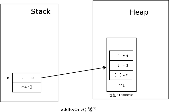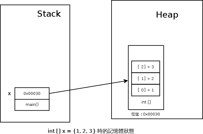 因為 Java 當中的 Reference(實際上就是 Pointer),就只能指到 Heap 上的 Java 物件,而沒有辦法指到位於 Stack 上的變數。